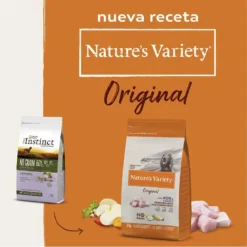 Carne de pavo deshuesada * (20%) proteína deshidratada de pavo (13%) guisantes deshidratados* (12,5%) patata deshidratada* (12%) almidón de guisante* proteína deshidratada de pollo (8%) grasa avícola* (6,5%) garbanzos deshidratados* (6%) hidrolizado de proteína (4%) fibra de guisante* raíz de achicoria deshidratada* sustancias minerales zanahoria deshidratada* (0,5%, equivalente a un 4% de zanahoria fresca) manzana deshidratada* (0,3%, equivalente a un 2% de manzana fresca).
