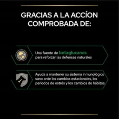 El suplemento para perros Natural Defences+ de Pro Plan es un producto que cuenta con una fantástica mezcla que ayuda a reforzar las defensas naturales y apoya el sistema inmunológico de tu peludo amigo adulto y sénior para que se mantenga saludable y lleno de vitalidad. Este complemento ayuda a la producción natural de anticuerpos en tu mascota gracias a la pared celular de la levadura que contiene betaglucanos.