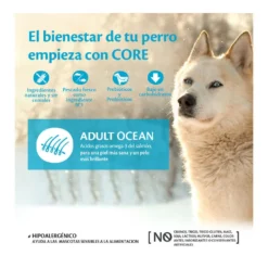 Wellness CORE Adult Ocean es un alimento completo para perros adultos de tamaño mediano y grande.